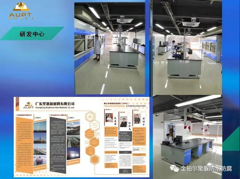 廣東堅派新材料有限公司是廣州市金鉑爾化工有限公司在廣東佛山高明區成立的研發子公司,是高明區首次引進的科技創新團隊專項資金資助項目承載單位。2020年在佛山市和高明區兩級政府科技創新專項資金的支持下,雙方在高明區共計投資4000萬元(政府資金1800萬元,自籌資金2200萬元)建立了專業研究第四代聚脲高分子材料的研發中心。引進國防973首席科學家吳建華教授海洋腐蝕研究團隊、張余英高工脂肪族聚脲研究團隊、暨南大學譚紹早教授石墨烯及微納米復合材料研究團隊,組成國內頂尖的基于改性脂肪族聚脲多功能智能防護涂層研究隊伍,依托廈門市海洋腐蝕與智能防護材料重點實驗室和暨南大學,專門研究第四代聚脲-氟硅改性脂肪族聚脲材料及其多功能智能化涂層,就當前石油石化、海洋環境、航空航天等極端嚴苛環境下的腐蝕防護難題進行攻關。是國內第四代聚脲的戰略研發平臺和重要生產基地。