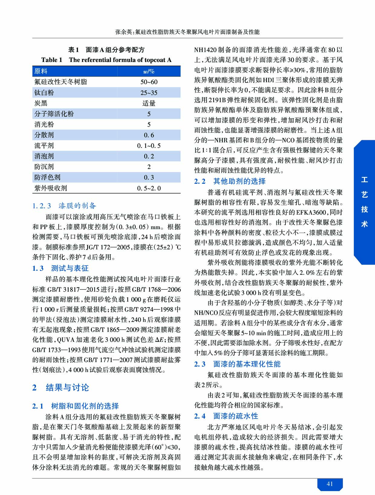 氟硅改性脂肪族天冬聚脲風(fēng)電葉片面漆制備及性能